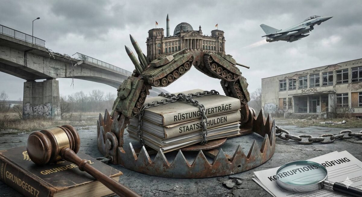 Wir sind pleite. Der Schuldenberg ist immens. Wir haben Gesetze verabschiedet und internationale Verträge unterzeichnet, die uns über Jahre hinweg zu massiver Aufrüstung verpflichten. Ja, wir haben uns sogar darüber hinaus verpflichtet die Rüstung anderer Staaten zu bezahlen. Wir haben Strukturen geschaffen, die den militärisch-industriellen Komplex immer weiter aufblähen. Das Geld der Steuerzahler ist auf Jahre hinaus verplant und fließt in Kanonen statt in die Infrastruktur.